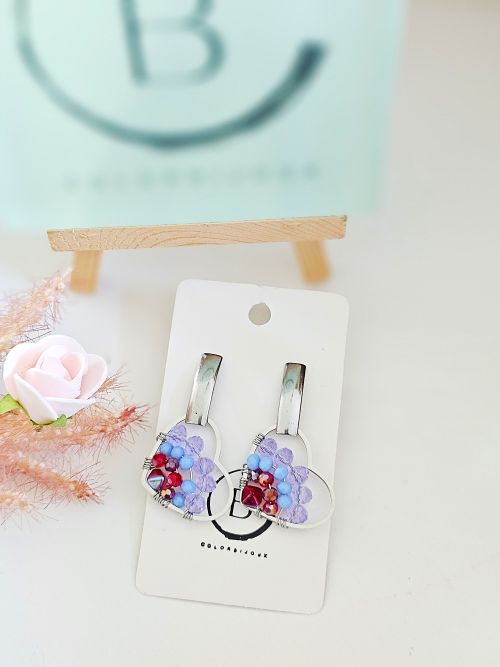 Un bijou coloré et original, très léger à porter, doré à l’or et attaché par des clous dorés et argentés.